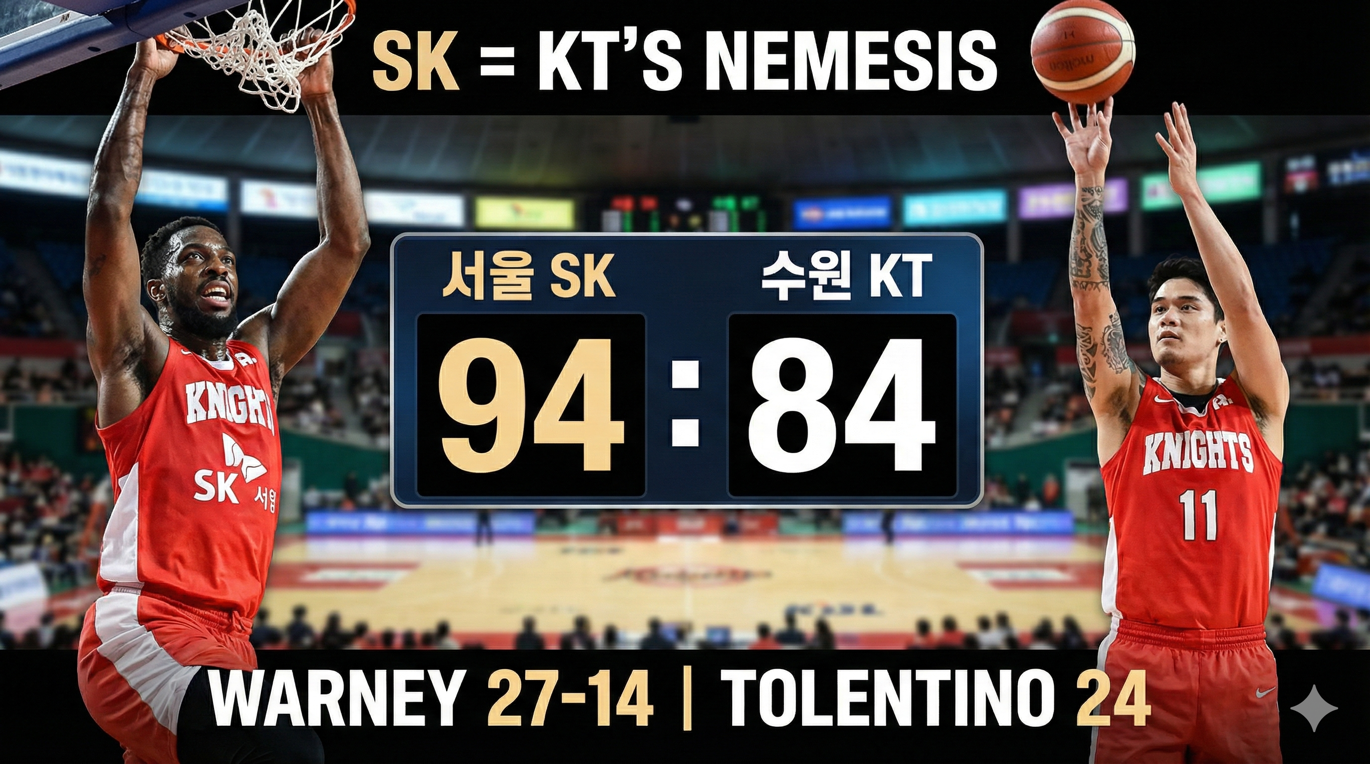 한 줄 요약: 워니의 페인트존 장악 + 톨렌티노의 외곽·자유투 응징, KT는 강성욱의 분전에도 후반 수비 균열을 메우지 못했습니다.