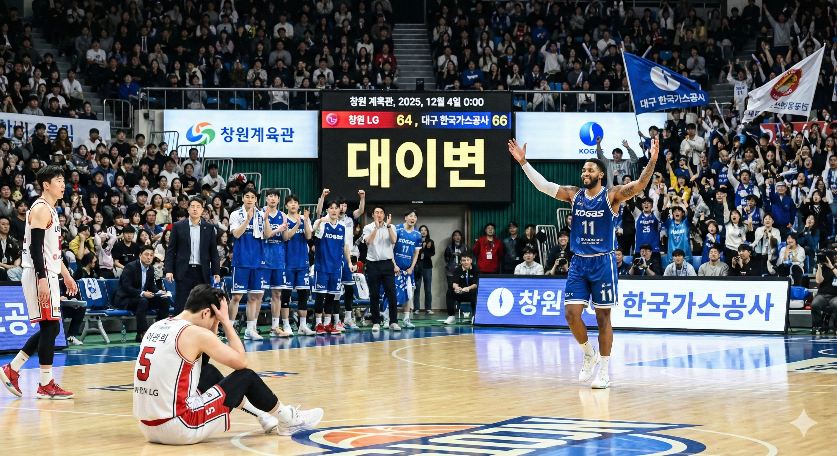 최하위 대구 한국가스공사가 선두 창원 LG의 연승을 저지했고, 안양 정관장은 부산 KCC를 꺾으며 선두 추격에 불을 지폈습니다. 뜨거웠던 오늘 경기의 핵심 포인트를 정리해 드립니다.