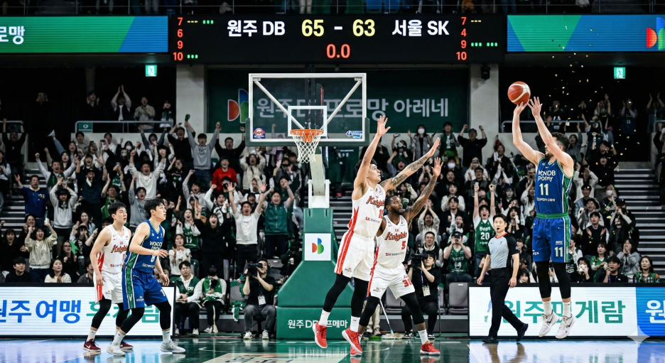 원주 DB는 이선 알바노의 극적인 버저비터 3점슛으로 서울 SK를 65-63으로 꺾고 2연승을 달렸습니다. 이로써 DB는 시즌 12승 8패를 기록하며 단독 3위로 도약했고, SK는 2연패를 당하며 10승 10패로 5위에 머물렀습니다.